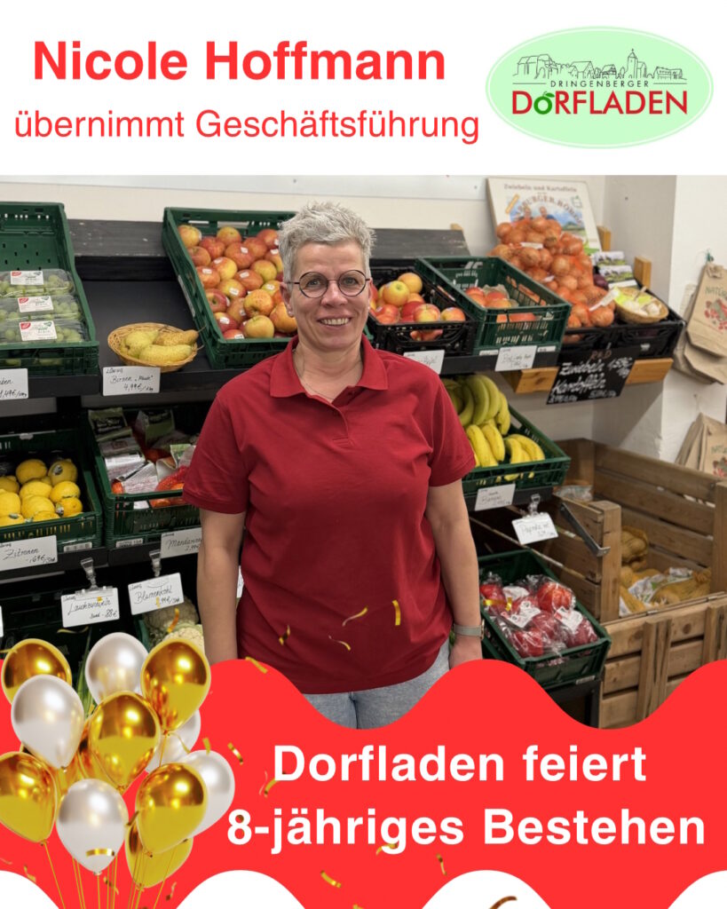 Ab dem 01.03. übernimmt Nicole Hoffmann die Geschäftsführung unseres Dorfladens und wird künftig auch aktiv im Laden mitarbeiten. Wir freuen uns sehr, dass wir mit ihr eine engagierte Nachfolge für Marcel Rehermann und Sandra Mönnikes gefunden haben. So bleibt unser Dorfladen weiterhin fest in der Dorfgemeinschaft verankert.