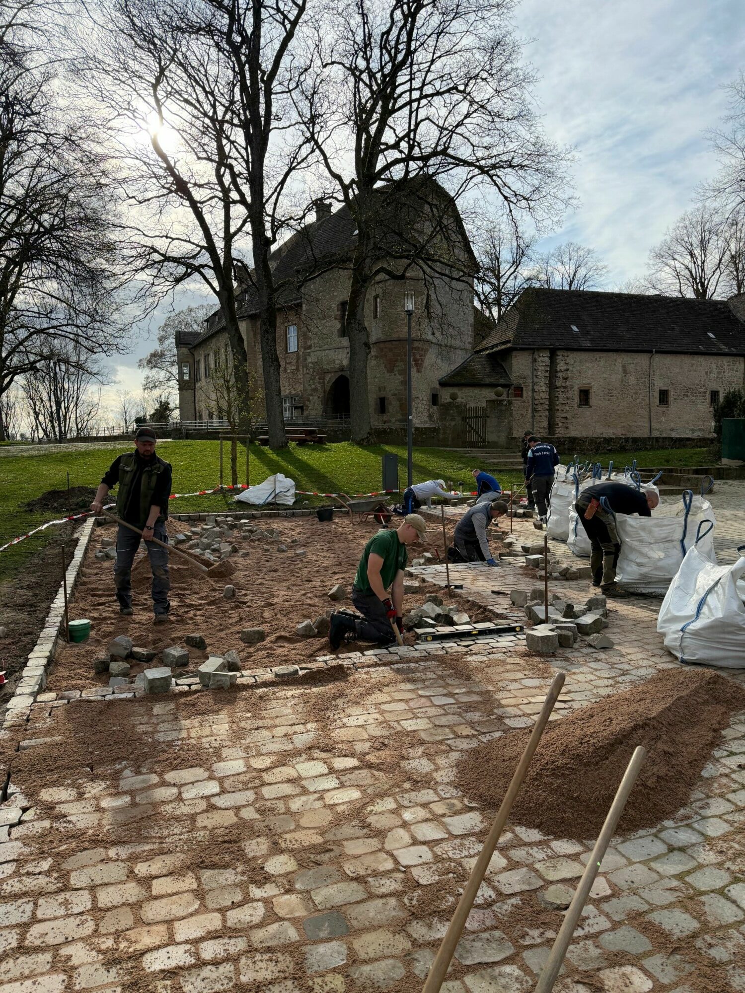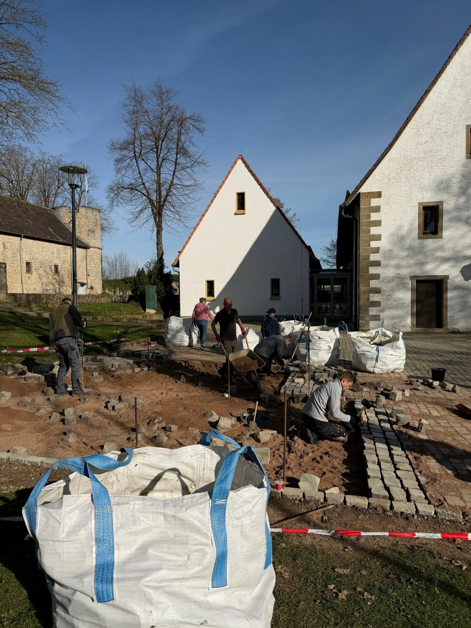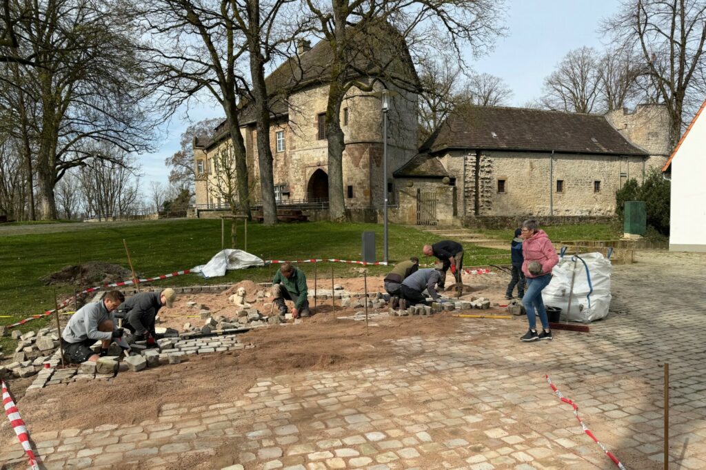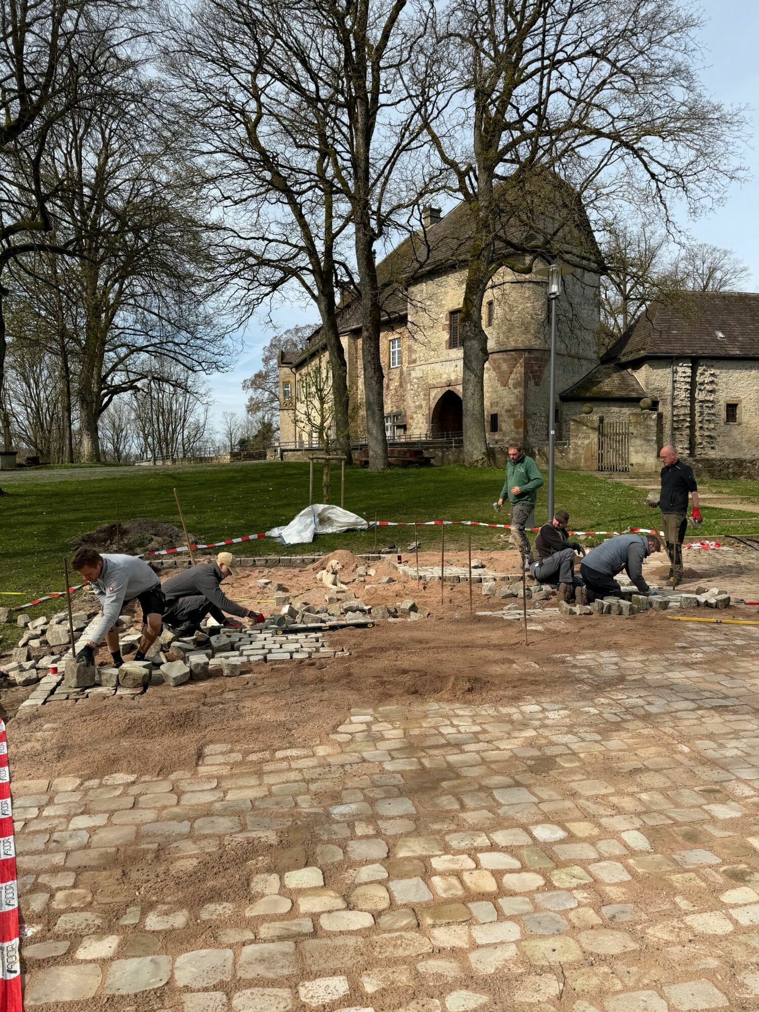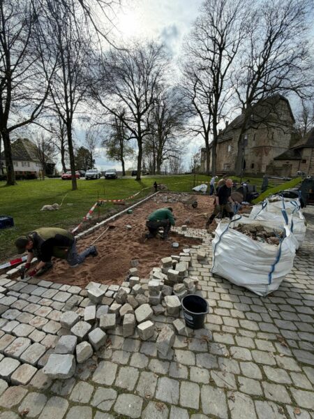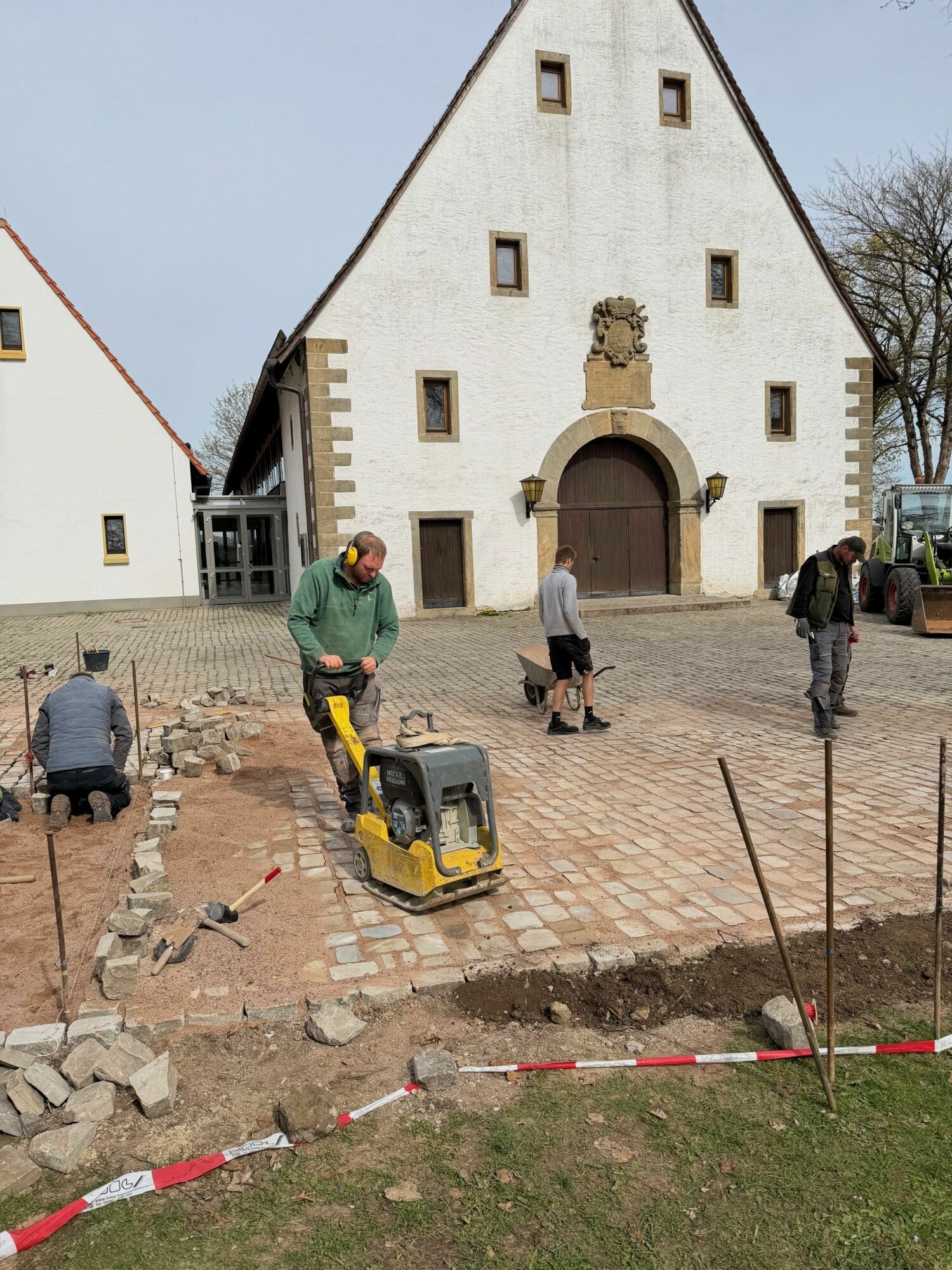 Die zuvor wassergebundene Fläche vor der Zehntscheune, die bei Regen schnell zur Matschfläche wurde, ist nun größtenteils mit Natursteinpflaster neu gestaltet worden. Damit schaffen wir nicht nur eine optische Aufwertung, sondern vor allem auch eine deutlich bessere Nutzbarkeit – gerade bei Veranstaltungen.
