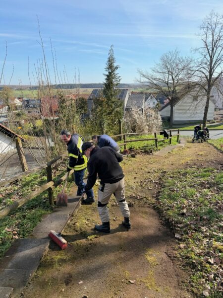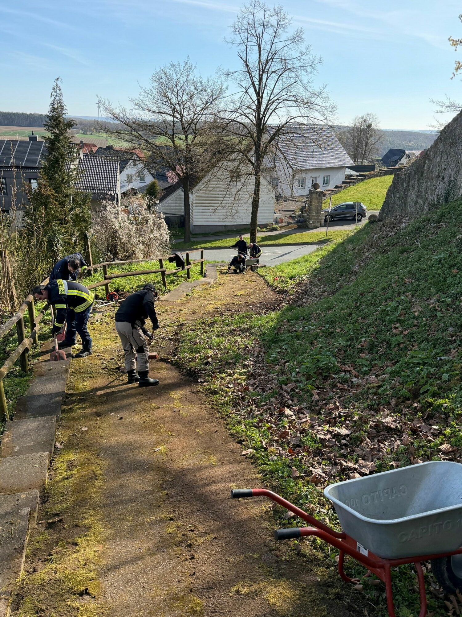 Parallel dazu waren auch Mitglieder der Feuerwehr Dringenberg im Einsatz: Mit großem Engagement wurde der Weg hinter der Zehntscheune freigeschnitten und gereinigt. Der zuvor rutschige und kaum nutzbare Weg ist nun wieder sicher begehbar und optimal zugänglich.