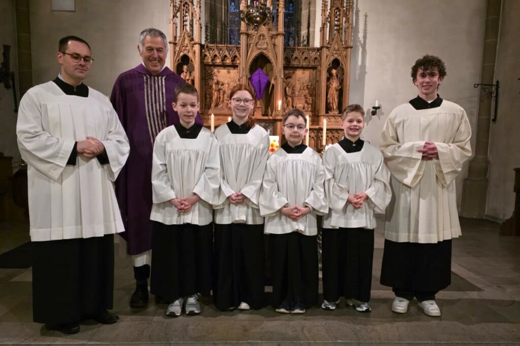 In den vergangenen Wochen wurden sie vom Messdiener Julian Jelitte und Thomas Pieper auf den Dienst vorbereitet. In den Übungsstunden haben sie den Umgang beispielsweise mit Kerzen, Kelch und Hostienschale gelernt. In der Vorabendmesse am 21. März 2026 konnten sie schließlich feierlich als neue Messdiener begrüßt werden. In dieser Messe haben sie auch bereits zum ersten Mal ministriert. Diese „Feuertaufe“ haben sie mit Bravour bestanden.