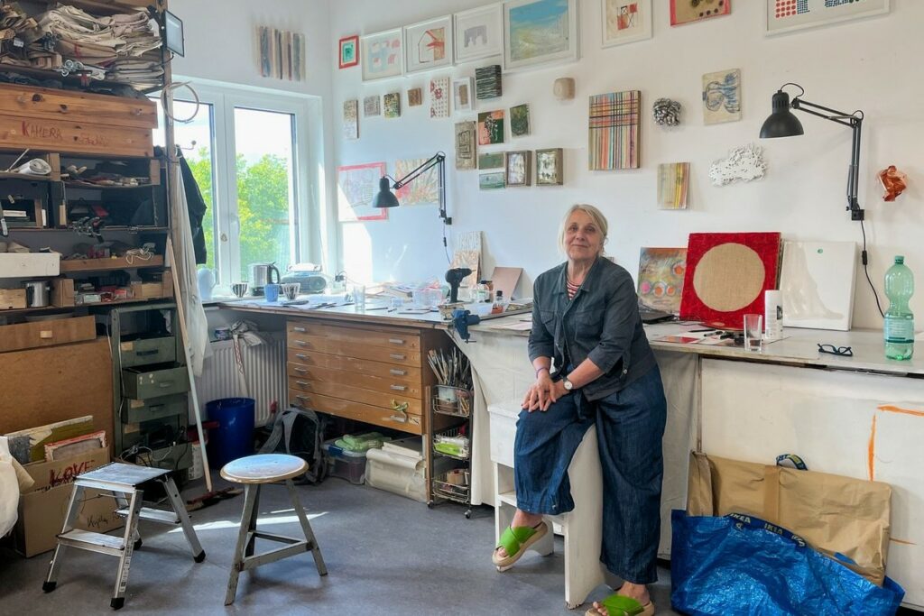 Das Beitragsbild zeigt Gabriele Regiert in ihrem Berliner-Atelier.